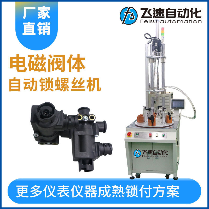電池閥是用以電磁控制的工業(yè)設(shè)備,是用來(lái)控制流體的自動(dòng)化基礎(chǔ)元件,目前電池閥有很多種,本案例主要講解電磁閥閥體的裝配技術(shù),用于電磁閥閥體的壓鑄系統(tǒng)包括有一儲(chǔ)能器座和一閥體本體。 電磁閥閥體在生產(chǎn)中需要有精密的質(zhì)量控制,在裝配中需要螺絲緊固,采用手工業(yè)作來(lái)尋找螺絲孔對(duì)準(zhǔn)在鎖付,由于無(wú)法看清螺絲孔的內(nèi)部,人工在作業(yè)時(shí)容易導(dǎo)致把產(chǎn)品擰壞或者滑牙等問(wèn)題導(dǎo)致工作效率低生產(chǎn)標(biāo)準(zhǔn)品質(zhì)低,為解決這些生產(chǎn)問(wèn)題,廠家通常都會(huì)采用機(jī)器人或者電動(dòng)螺絲刀來(lái)實(shí)現(xiàn)高度柔性自動(dòng)化生產(chǎn),飛速自動(dòng)化在這里為廠家設(shè)計(jì)了一臺(tái)轉(zhuǎn)臺(tái)式多軸自動(dòng)鎖螺絲機(jī),該設(shè)備特點(diǎn)如下: 設(shè)備通過(guò)氣動(dòng)元器件實(shí)現(xiàn)螺絲的自動(dòng)輸送、擰緊、檢測(cè)等工序同步進(jìn)行,通過(guò)設(shè)備來(lái)簡(jiǎn)化螺絲緊固工序??蓪?shí)現(xiàn)對(duì)多個(gè)工件進(jìn)行四個(gè)面以上、任意角度的三維空間加工處理,使每條流水線(xiàn)一天工作八小時(shí)生產(chǎn)的產(chǎn)品可達(dá)到3200個(gè)以上,每條流水線(xiàn)可節(jié)約四名以上的工人,大大提升產(chǎn)能的同時(shí),降低了工人的勞動(dòng)強(qiáng)度;其采用柔性化設(shè)計(jì),并適合對(duì)多個(gè)不同品種、不同型號(hào)的加工工件進(jìn)行自動(dòng)打螺絲,且換品種調(diào)試時(shí)間< I分鐘,節(jié)省時(shí)間,成本低,效率高,其又通過(guò)設(shè)置有翻轉(zhuǎn)機(jī)構(gòu)可全自動(dòng)智能化地對(duì)加工工件進(jìn)行橫向或縱向翻轉(zhuǎn),避免了人工對(duì)工件進(jìn)行翻轉(zhuǎn),并設(shè)置有定位機(jī)構(gòu)和限位機(jī)構(gòu),對(duì)工件傳送進(jìn)行定位和限位,加工定位精準(zhǔn),成品率高,效果好,智能化程度高,適合工業(yè)自動(dòng)化發(fā)展的需求,結(jié)構(gòu)簡(jiǎn)單,使用簡(jiǎn)單、快捷,便于廣泛推廣使用的多軸多工位獨(dú)立自動(dòng)鎖螺絲機(jī)確屬必要。
